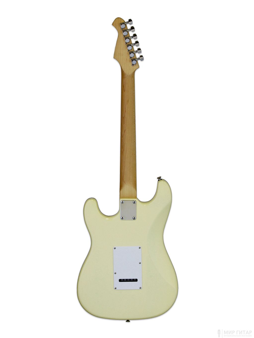 ARIA STG-003SPL VW – шестиструнная электрогитара в корпусе типа «стратокастер» с белой отделкой (Vintage White, VW), Она входит в серию STG, где представлены электрогитары с различными вариантами отделки. Цельный корпус выполнен из липы, гриф выполнен из клена, у него болтовое крепление, а накладка – морёный орех. У гитары стандартные 22 лада, а длина мензуры составляет 648 мм (25.5”).