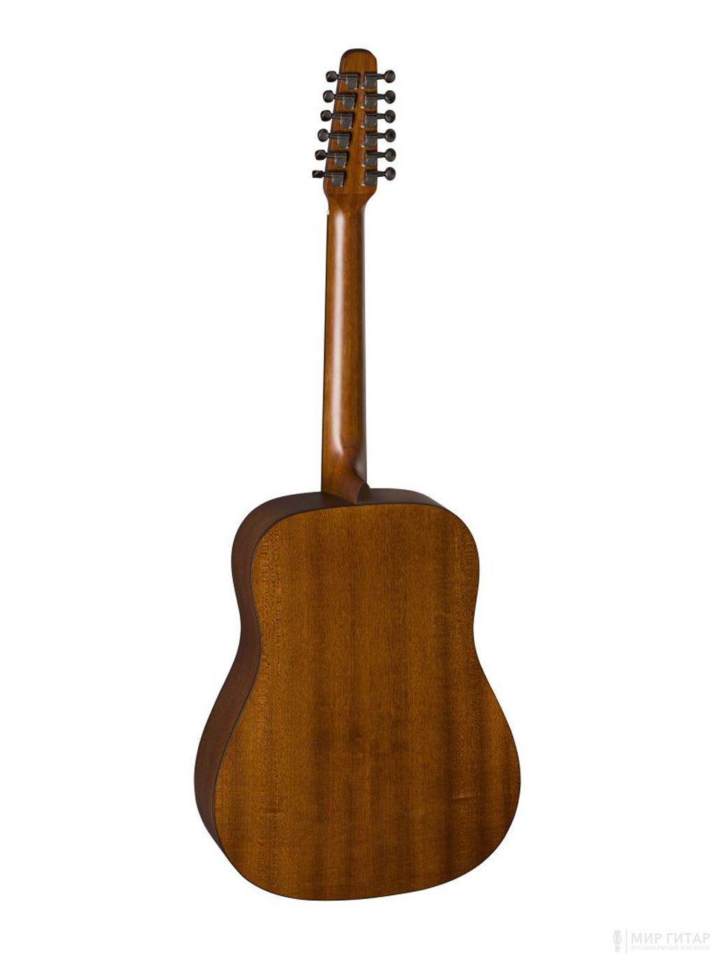 BATON ROUGE X11LS/D-12 – 12-ти струнная акустическая гитара без выреза в корпусе типа дредноут, благодаря чему инструмент имеет широкий динамический диапазон, звучит громко и объемно. Верхняя дека выполнена из ели, задняя дека и обечайка – из красного дерева (махагон). Данное сочетание материалов делает тембр гитары ярким и звонким. Гриф также сделан из красного дерева, накладка на гриф и сам бридж – из овангкола. У гитары 21 лад, а верхний (48 мм) и нижний порожек выполнены из материала Nubone: упрощенная разновидность материала TUSQ, которая лучше гасит вибрацию струн, лучше передает частоты и гармоники, увеличивает объем звука и обогащает тон.