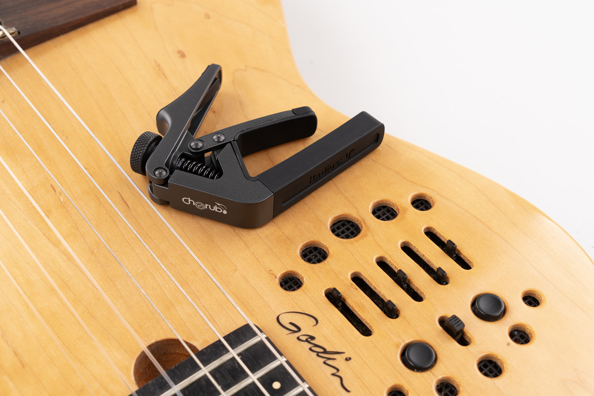 Обладая более чем 20-летним опытом работы в этой отрасли, Cherub точно понимает, что именно нужно гитаристу от каподастра. Конструкция CGC-1 проста, но изысканна и решает общие проблемы, встречающиеся во многих каподастрах. Благодаря регулируемой пружине натяжения, которая поддерживает строй вашей гитары, точному радиусу, который идеально подходит к накладке грифа, и стильному внешнему виду, этот каподастр является идеальным инструментом для гитаристов.