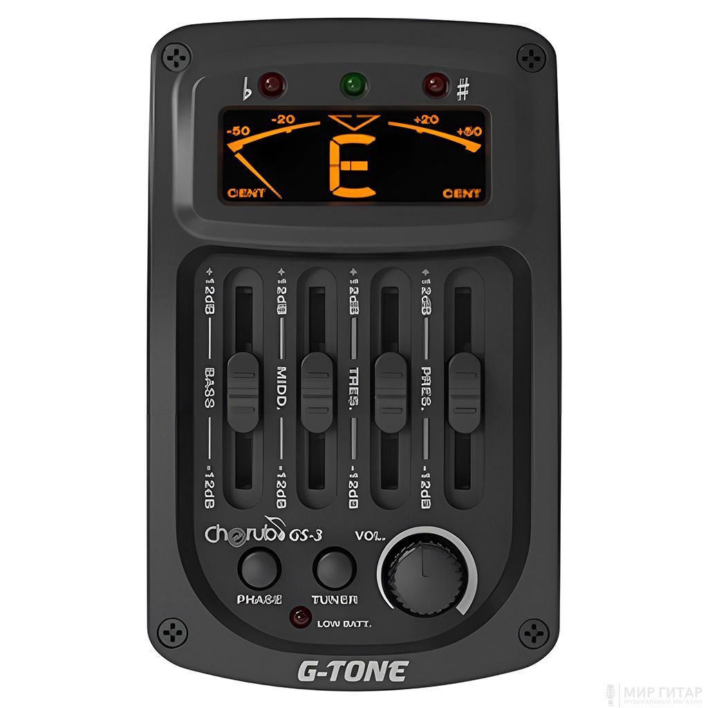 Четырехполосный врезной эквалайзер с инверсией фазы, хроматическим тюнером и большим ЖК-дисплеем. Индикатор низкого уровня заряда батареи напомнит о необходимости ее замены.