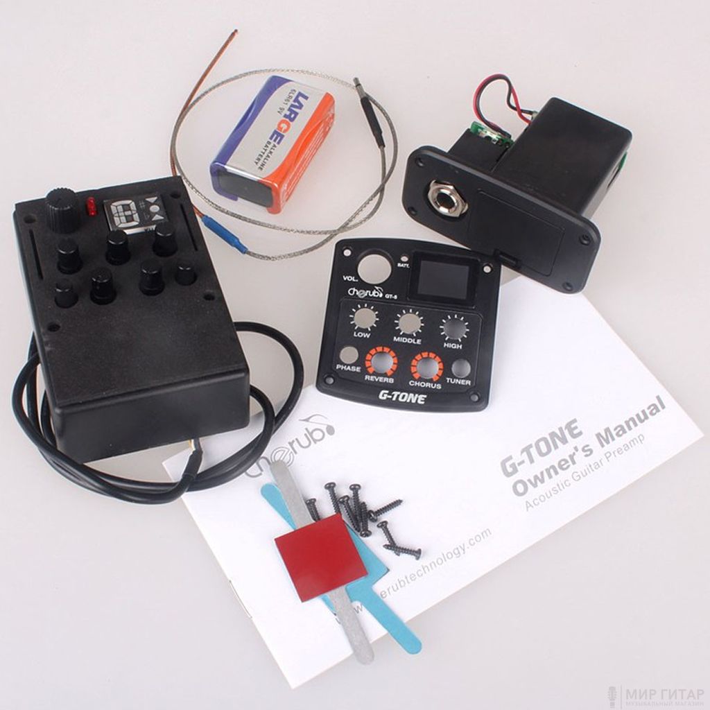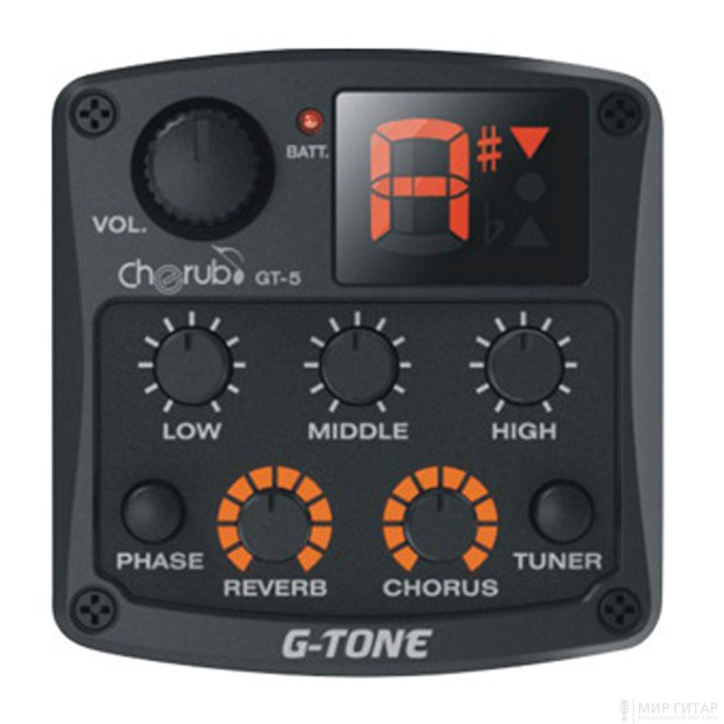 Трехполосный эквалайзер с хроматическим тюнером, эффектами хорус и реверберацией. Компактные размеры облегчают установку на гитару. Размеры видимой части эквалайзера составляют лишь 52х54х4мм. Оснащен функцией определения уровня заряда батареи.