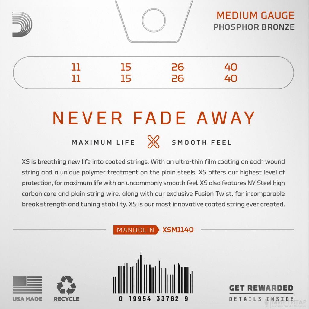 Меньший уровень акустического демпфирования в сравнении с другими струнами с покрытием, позволяет сохранить подлинное легендарное звучание D’Addario.