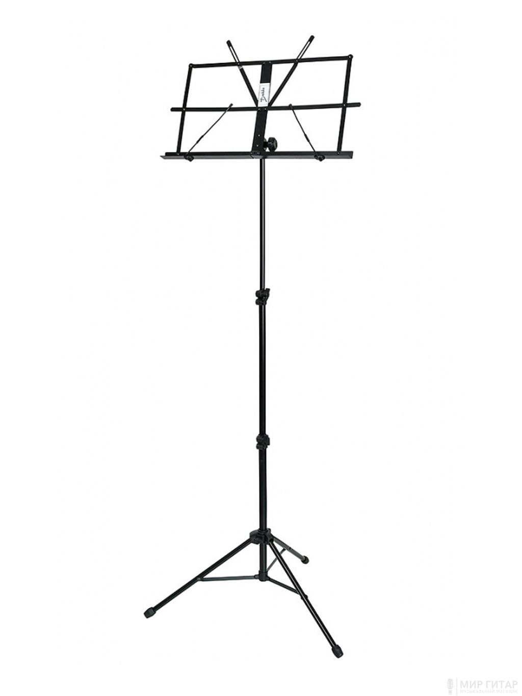 Подставка для нот JR-203 BK пюпитр (напольный) УСИЛЕННЫЙ с чехлом для переноски в комплекте. Сделан из металла, пюпитр подходит для использования вне помещений, две точки регулировки высоты от минимальной в 85 см. до максимальной в 150 см. Удобная подставка для нот с большим лотком 47 х 23см, и фиксацией нот при помощи надежных зажимов.