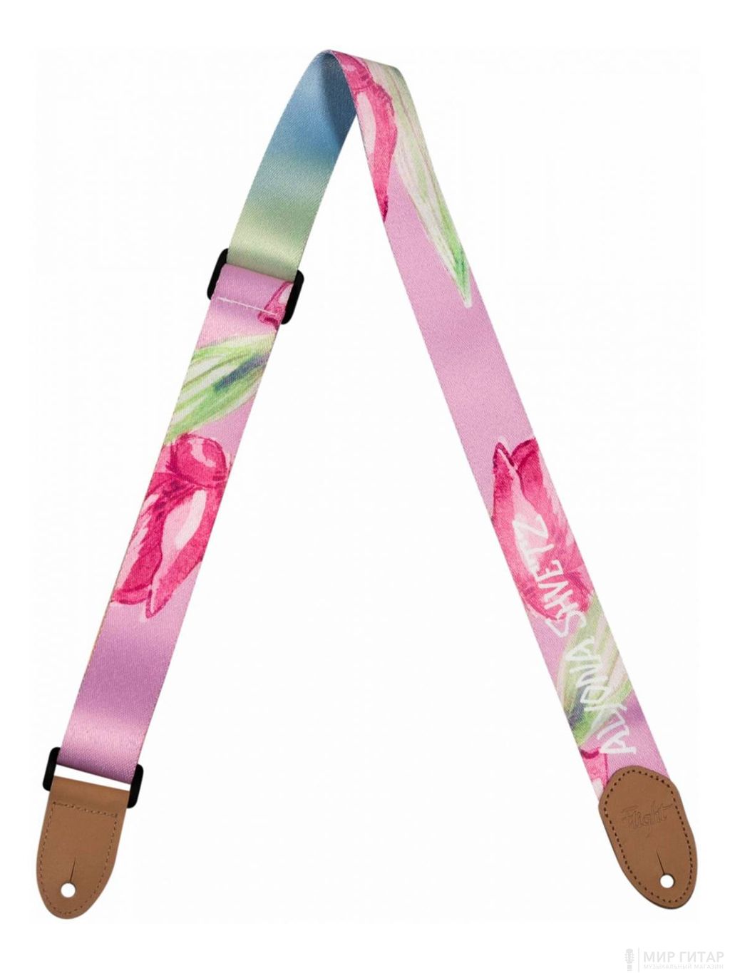 Стильный именной ремень для укулеле с прекрасным цветочным рисунком от Алены Швец.