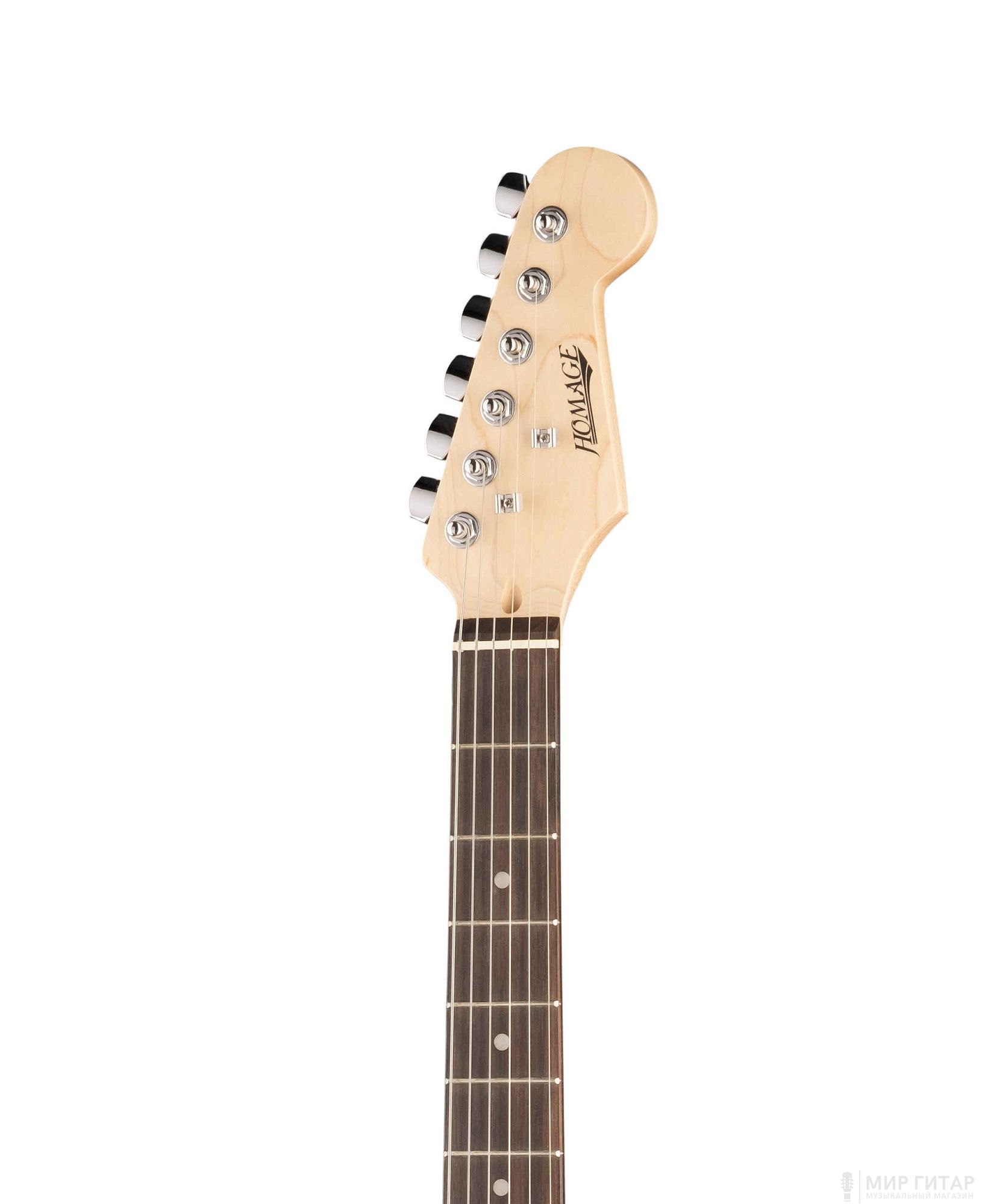 ПроизводительHomageСтранаКитайТип корпусаStratocasterТип бриджаTremoloЗвукоснимателиHSSМатериал грифаКленКрепление грифаНа болтах