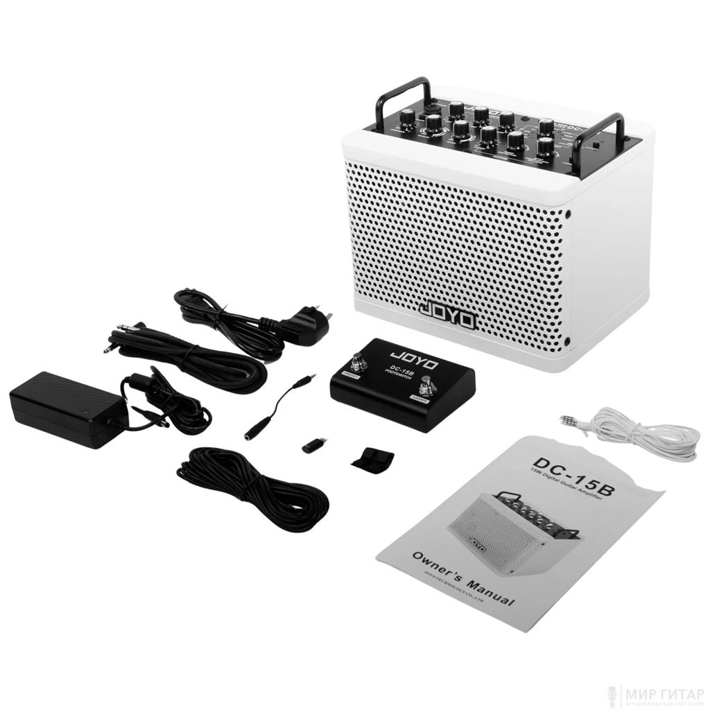 Комбоусилитель для электро, бас-гитары или акустической гитары, с аккумулятором, драм-машиной, лупером, Bluetooth и foot switch, 15 Вт.