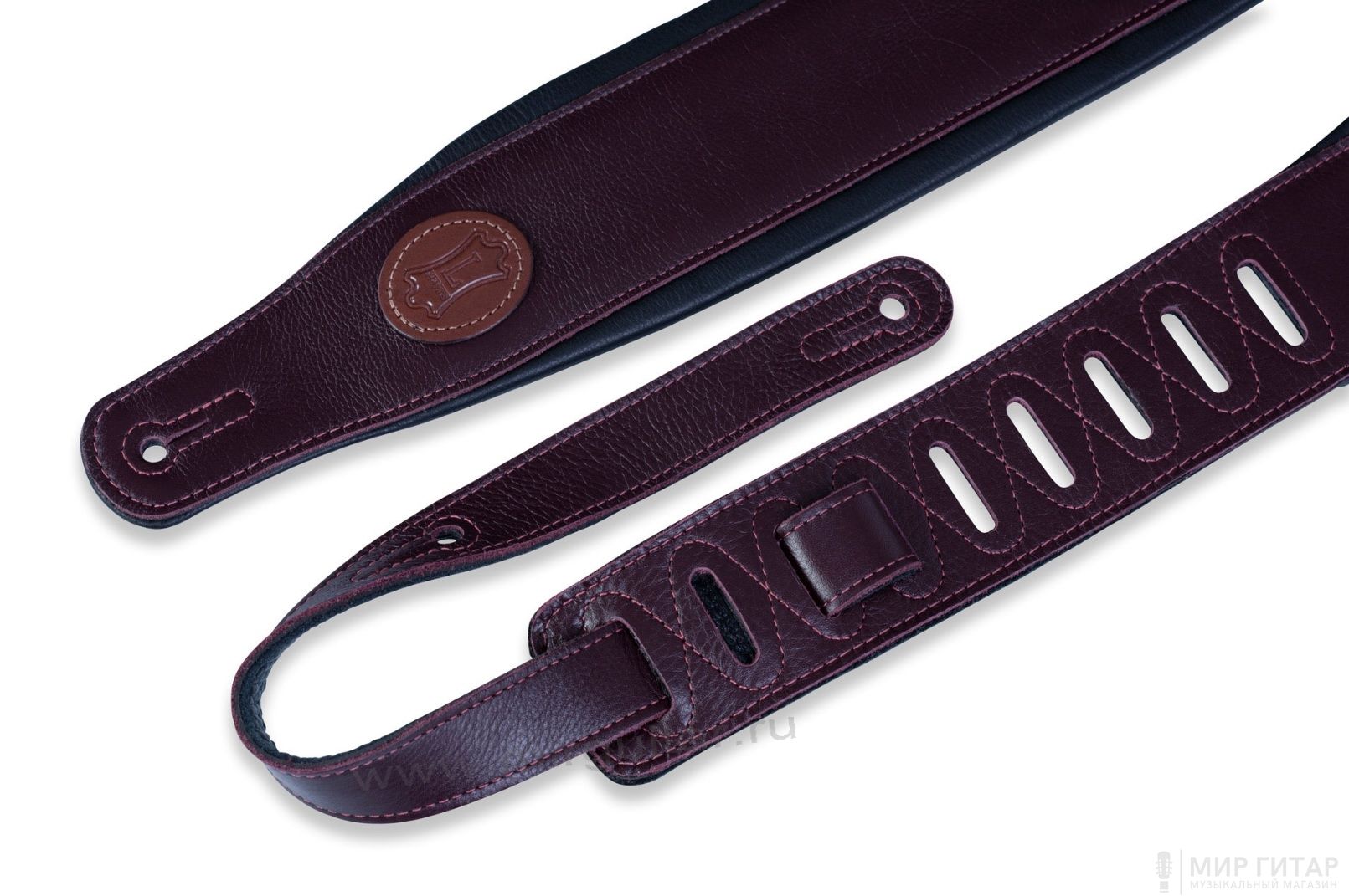 Ремень для гитары, кожаный, бордовый.