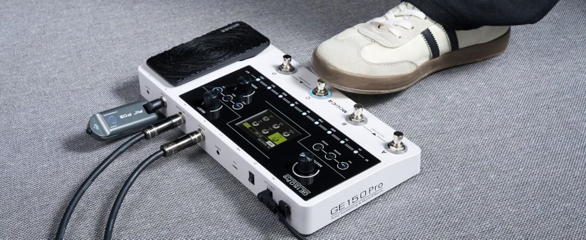GE150 Pro — долгожданное дополнение к семейству GE, с четырьмя многофункциональными ножными переключателями, предлагающими особенно впечатляющее обновление. Как и ожидалось, устройство включает в себя все стандартные соединения, включая базовые, такие как моно 1/4-дюймовый вход и стерео 1/4-дюймовый выход, а также более специализированные функции, такие как дополнительный вход 1/8 дюйма и выход для наушников 1/8 дюйма.