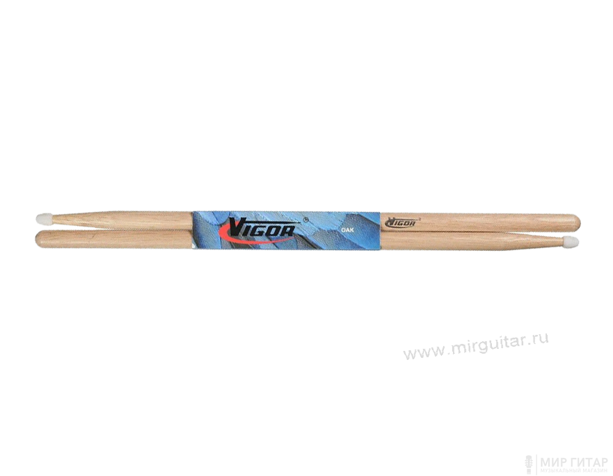 Дуб очень прочное дерево, весит больше, чем палочки из клёна и ореха, обладает большей прочностью. Палочки из дуба самые тяжёлые, плотные, редко ломаются. Дуб очень влагоустойчивое дерево. Барабанные палочки VIGOR имеют нейлоновые наконечники в виде капли. Нейлоновые наконечники более прочные и твердые, поэтому производят более яркие оттенки звука с большей атакой и проекцией. Самое главное преимущество нейлоновых наконечников это их долговечность, они не теряют своей плотности и не откалываются.